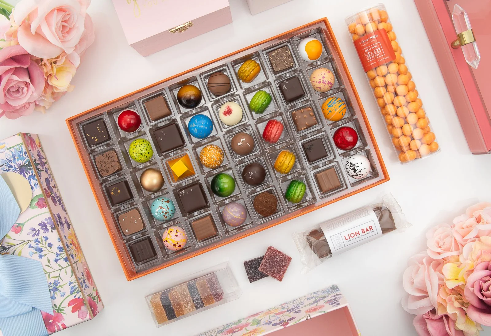 Many couples appreciate gifts that combine multiple confections—such as chocolates paired with French macarons—to create a colorful and celebratory assortment.